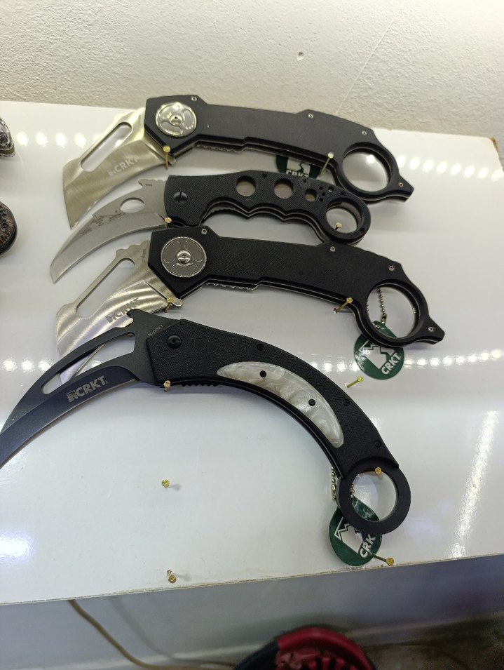 Kavisli bıçakları ve ergonomik sapları olan siyah katlanabilir karambit bıçak seti, güvenli tutuş ve hassasiyet sağlar. ️