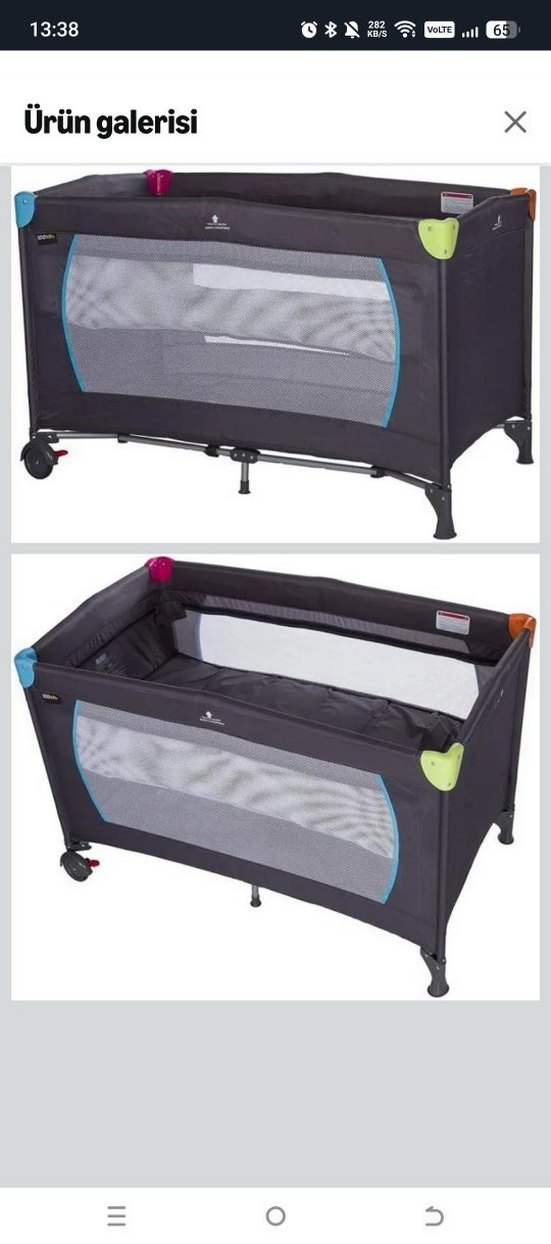 Siyah oyun parkı yatak, hava alması ve görünürlük için file yanlara sahip, sağlam çerçeveli ve tekerlekli kolay taşınabilir yapıda. işaretli alan da sağa sola çekerken gıcırdama oluyor onun dışında bir sorunu yok