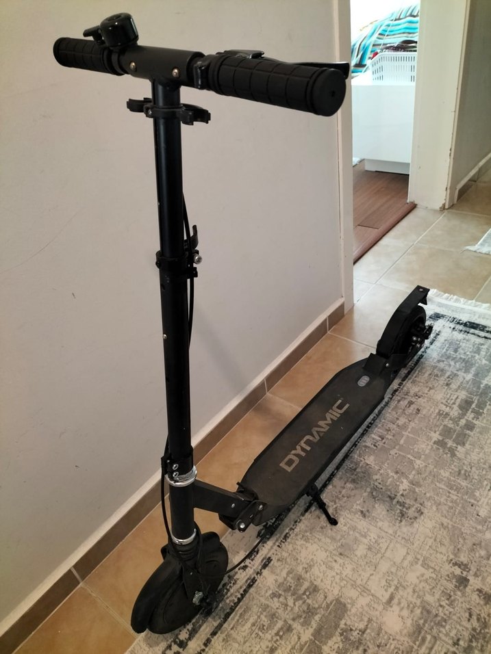 Ayarlanabilir gidon ve arka frenli siyah katlanabilir çocuk scooterı. Kompakt ve hafif tasarım.