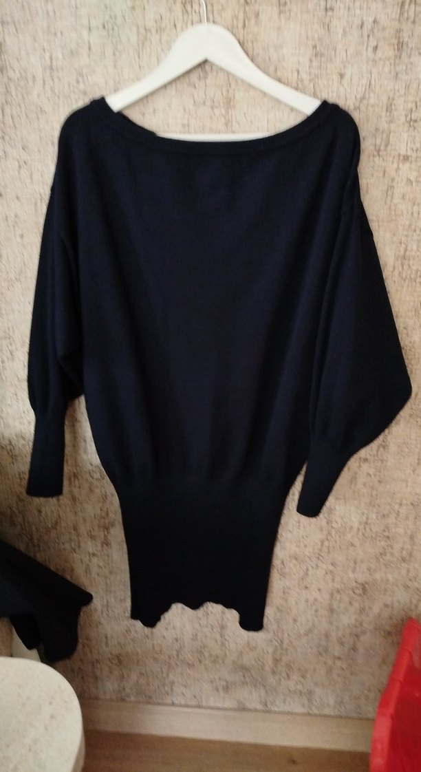 Siyah renkli, salaş kesim ve drapeli tasarıma sahip V yakalı, uzun kollu kadın kazak. Yumuşak ve sıcak kumaştan günlük kullanım için uygundur.