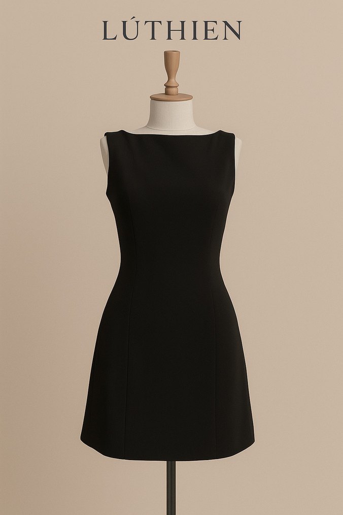 Klasik ve ofis tarzına uygun siyah kayıkçı yaka elbise