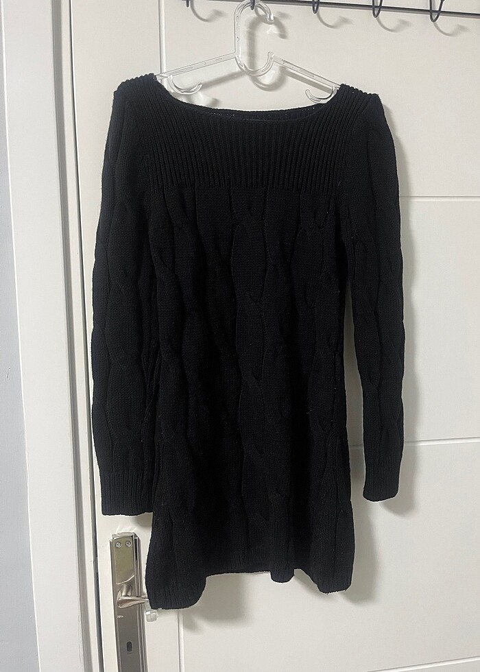 Geniş kesim kayık yaka şık ve rahat kazak dilerseniz çorap üstüne elbise olarak da kullanabilirsiniz boy omuzdan 75 cm iki kol arası 28 cm #kazak #siyahkazak #örgüdesenkazak
