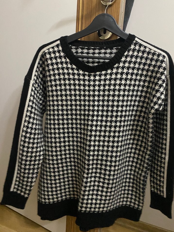 Siyah Kazayağı Desenli Kazak