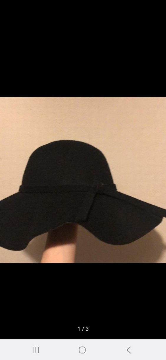 Siyah keçe malzemeden yapılmış, tokalı ve geniş kenarlı kadın şapkası. Minimalist goth tarzında, bohem ve retro dokunuşlar içerir.