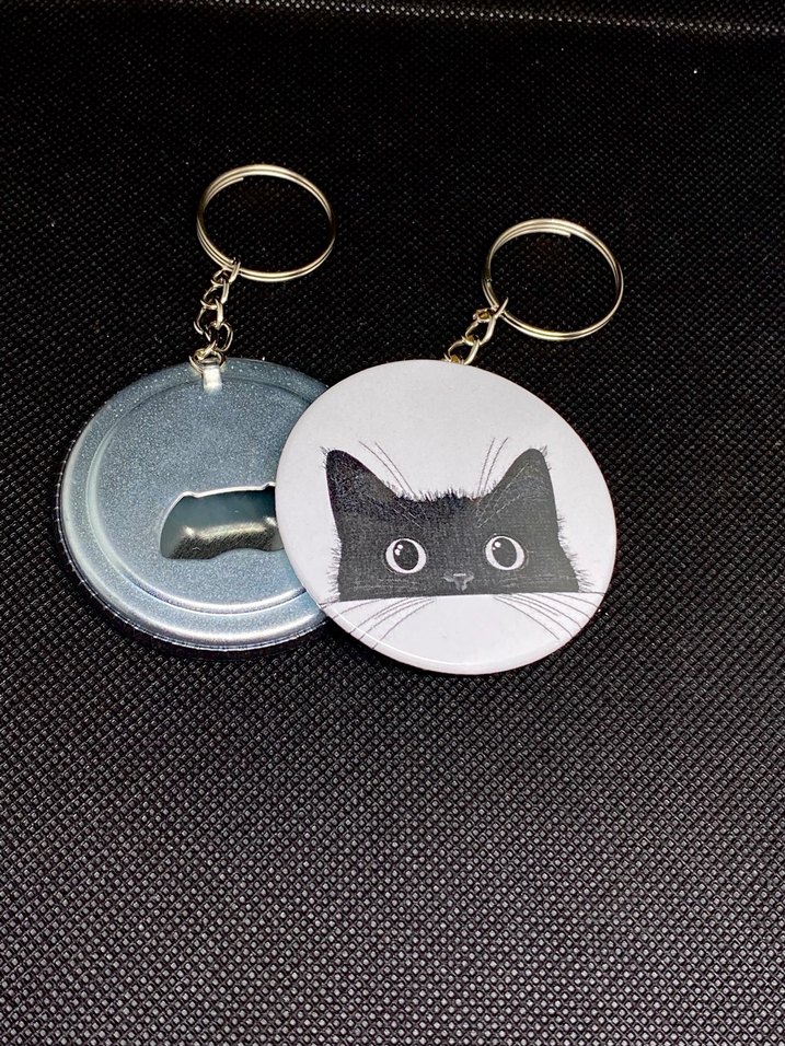 siyah kedi desenli açacaklı anahtarlık, minimalist goth ve rock punk tarzına uygun. İstediğiniz görsel ile üretim yapılır. Toplu siparişlerde özel fiyat uygulanır.