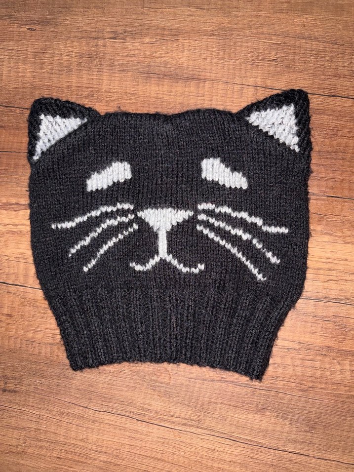 siyah Kedi desenli kawaii Örgü yetişkin Bere kulaklı şapka kış