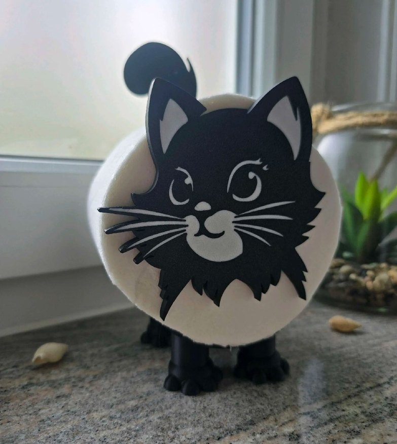Sevimli kedi yüzü tasarımlı siyah kedi aksesuarı, kedi severler için uygun. Tuvalet kağıdı rafı.