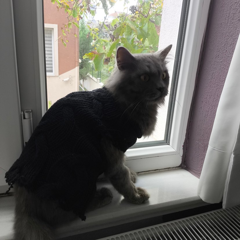 Bu gri kedi kıyafeti, evcil hayvanınız için sıcaklık ve konfor sağlar. Sıkı oturur ve serin havalar için uygundur.