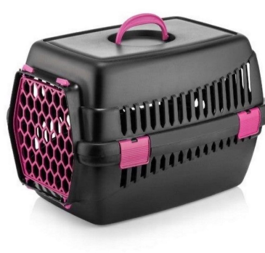 siyah pembe detaylı taşıma kabı, güvenli kapı ve rahat taşıma sapı ile kolay kullanım sağlar. Havalandırma delikleri ve sağlam yapısı vardır. hic kullanılmadı kenarda duruyor baska taşıma cantamız oldugu icin kullanmıyoruz hic bir sıkıntısı yok