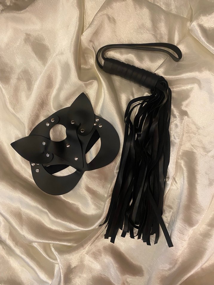 Siyah Kedi Maskesi ve Kırbaç Seti