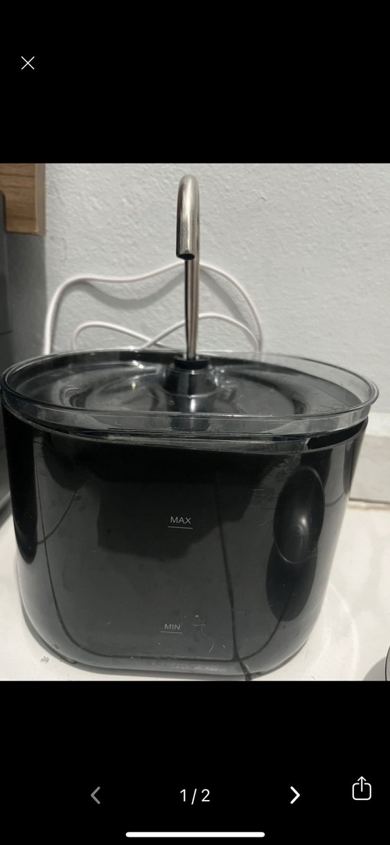Şeffaf kapaklı ve su dağıtımı için musluklu siyah sterilizatör. MAX ve MIN su seviyesi göstergeleri bulunur.