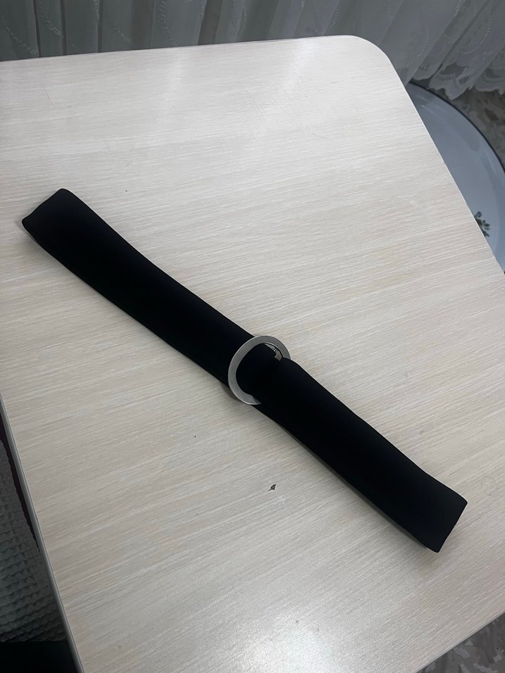 Siyah kemer, gümüş halka tokalı kemerli tasarıma sahiptir ve minimalist gotik stile uygundur.