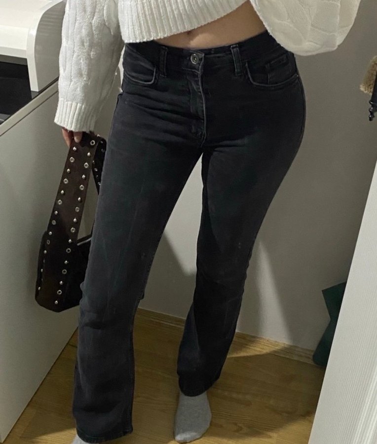 Siyah, kemer detaylı dar kesim kot pantolon. Normal boyda, günlük kullanım için uygun rahat ve şık bir model.