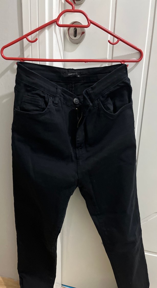 , siyah renkli, normal boyda ve dar kesim kadın kot pantolon. Günlük rahat ve şık sokak stili için uygundur.