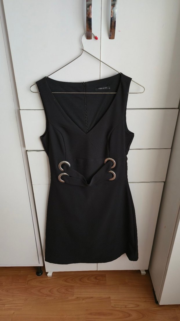 Siyah, kemerli, V yakalı, kolsuz ve midi boyda, gövdeyi saran kesime sahip bu elbise gotik ve modern bir tarz sunar. orta boy. boyunu ölçtüm fotoğraflarda var. sadece 1 kez kuzenimin isteme töreninde giydim. öylece dolapta duruyor diye satışta. #elbise #siyahelbise #midielbise