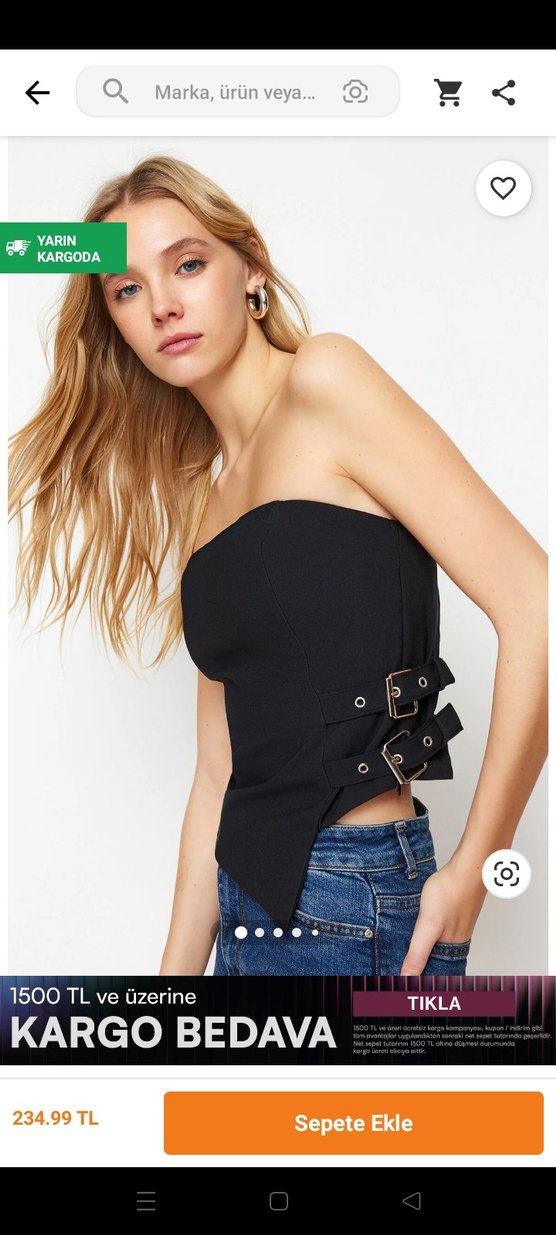 Siyah, kemer detaylı straplez mini denim bluz. M beden hiç kullanılmadı sadece etiketi yok