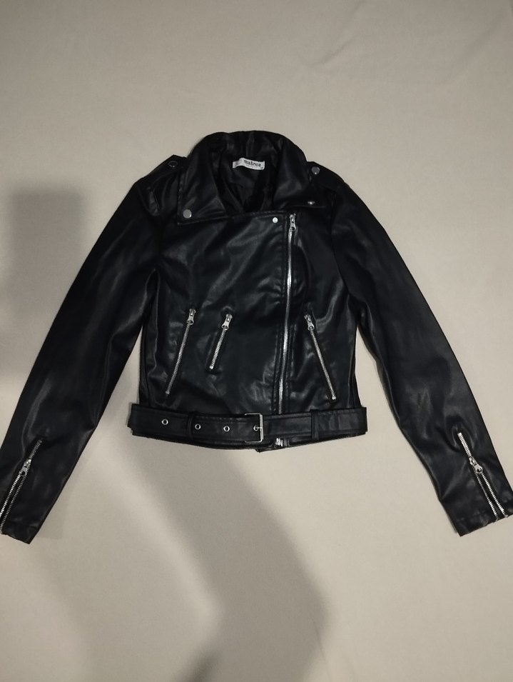 Bu siyah kemerli biker deri ceket, keskin yakası, askılı kolları ve bel detayıyla grunge punk tarzını yansıtıyor. Kısa ve desensiz, günlük kullanıma uygun. ✨ sıfır ürün