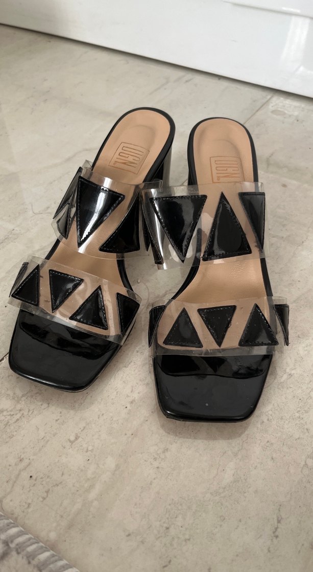 Siyah Kemerli Blok Topuklu Kadın Terlik