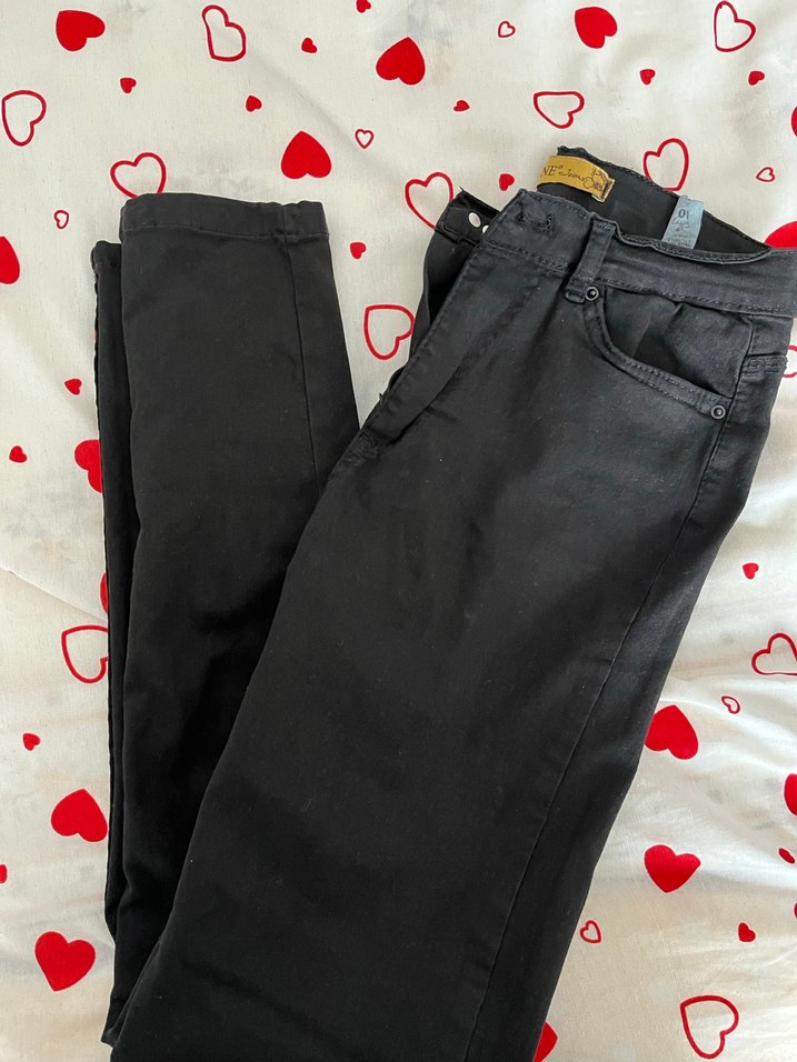 Siyah, dar kesim denim pantolon, kemerli ve midi boyda, romantik akşamlar için uygun rahat sokak stilinde.