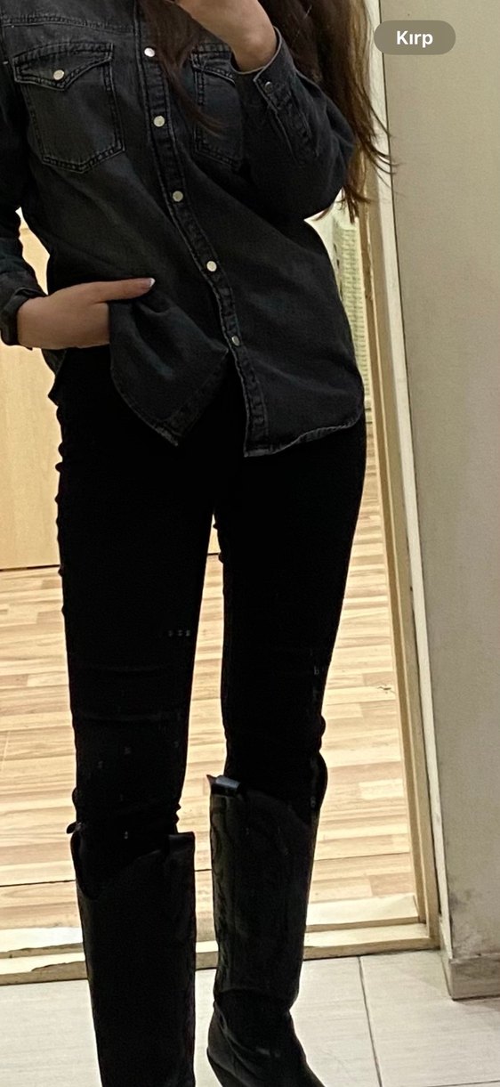Siyah denim kumaştan, kemerli ve dar kesim kadın jean. Günlük kullanıma uygun, desen içermeyen sade tasarıma sahip.