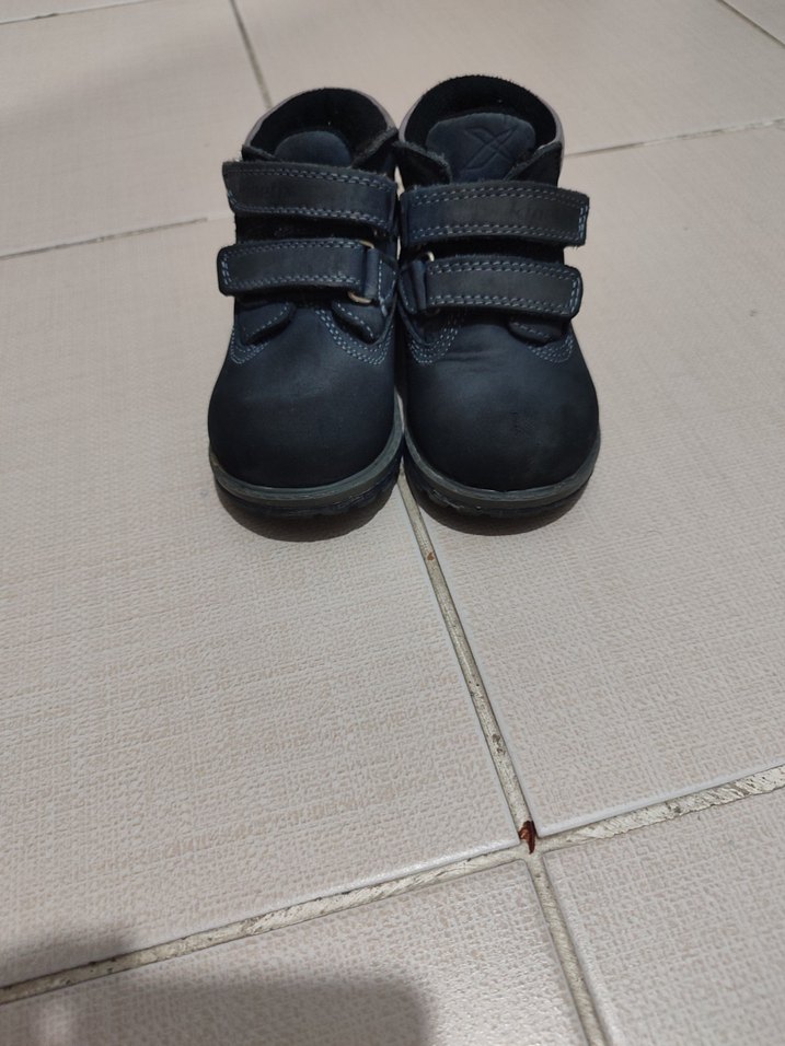 Siyah, kemerli ve kauçuk malzemeden yapılmış erkek çocuk botları. Trend sokak stili için uygun, sade ve koyu renklidir.