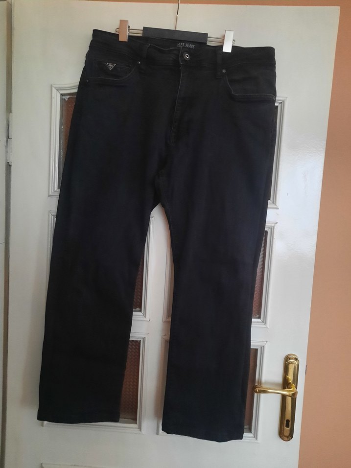 Siyah renkli, kemerli ve normal boyda erkek denim pantolon. Rahat kesimiyle günlük ve sokak stiline uygundur.uzunluk 95 cm