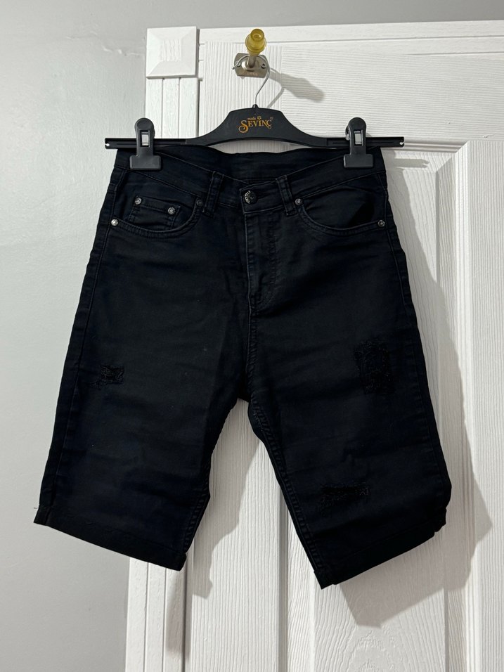 Siyah Kemerli Erkek Kısa Kot Pantolon