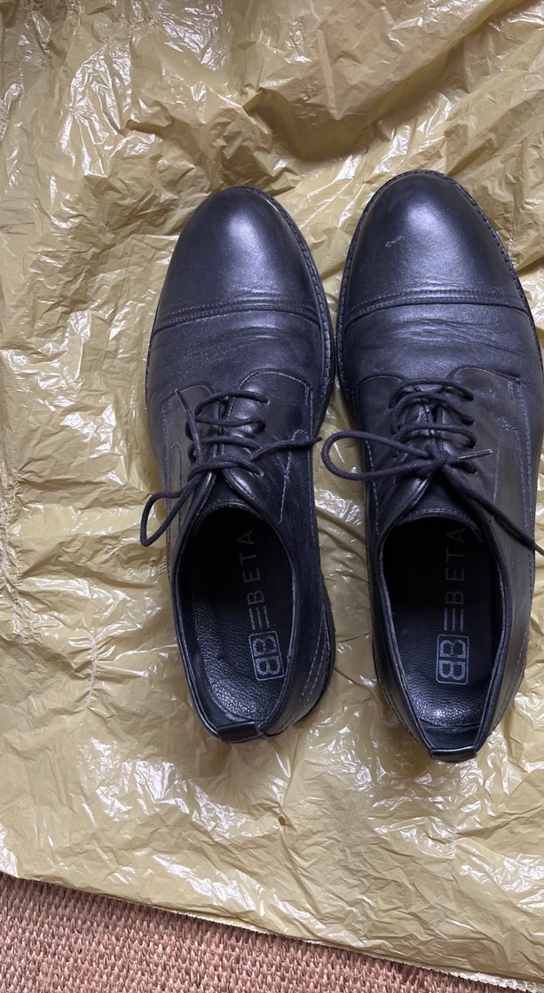 Kemer detayı olan siyah erkek klasik ayakkabılar, kauçuk malzemeden üretilmiştir. Ofis kullanımı için uygundur, goth tarzı etkisi taşır. Numara 38 olarak işaretlenmiştir. Az giyildi kusursuz