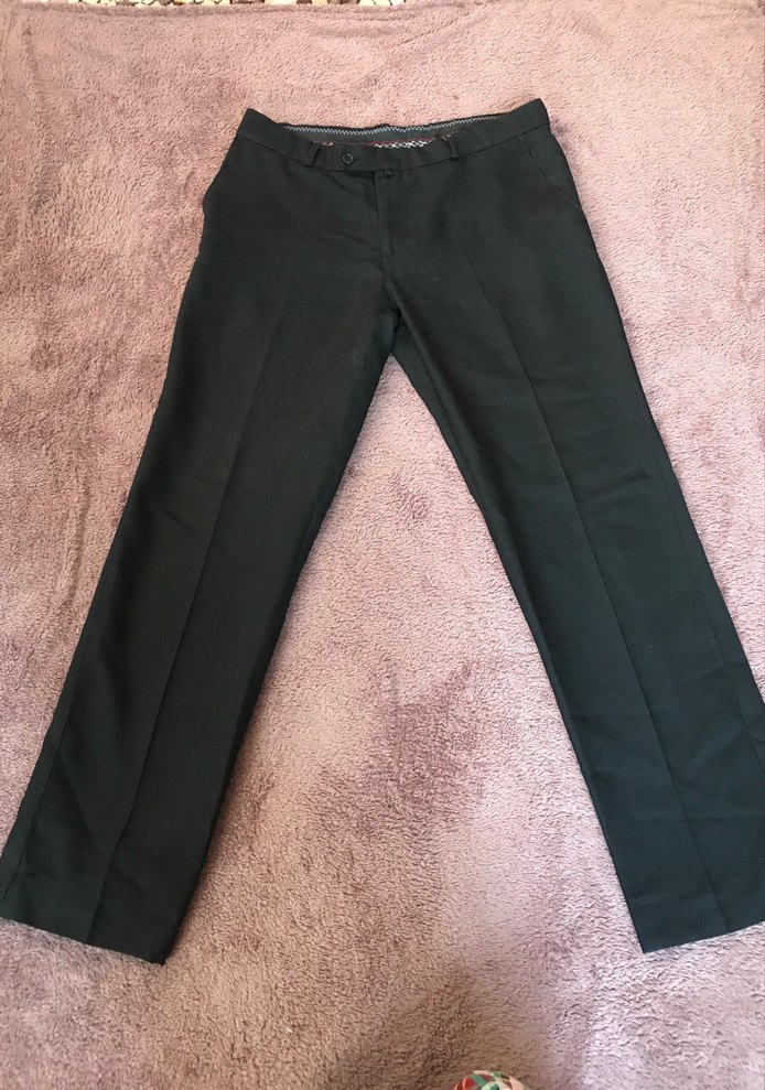 Siyah, kemerli, regular fit erkek ofis pantolonu. Düz desensiz, normal boy ve sentetik dokulu kumaştan üretilmiştir. Trendy casual iş ortamları için uygundur.