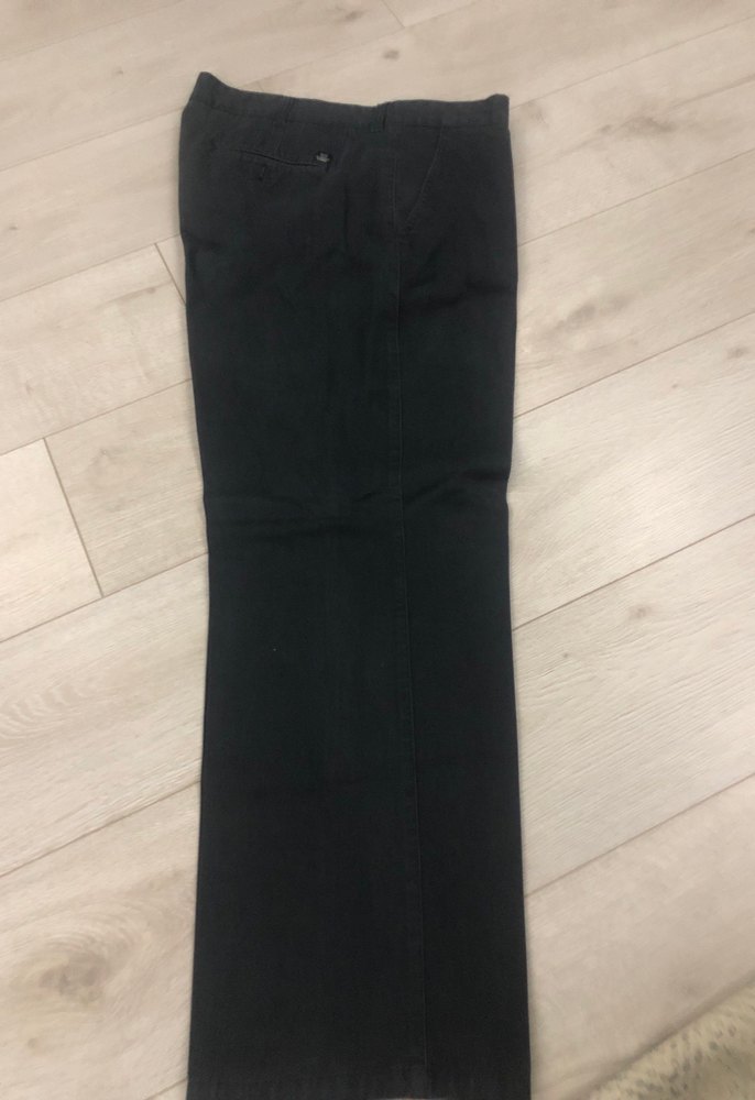 Siyah renkli, kemerli, regular fit erkek pantolonu. Sentetik, pürüzsüz kumaştan, desen içermeyen ve ofis kullanımı için uygundur. Ağ kısmında solma var