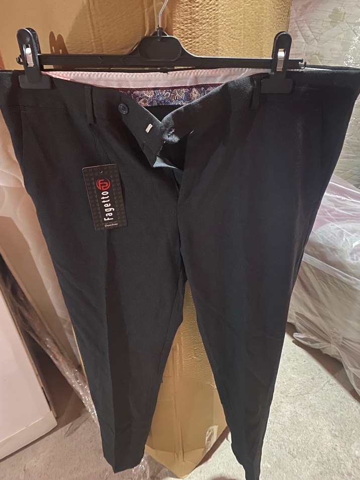 Siyah, kemerli, regular fit erkek pantolonu. Sentetik kumaştan, ofis ve iş ortamlarına uygun.