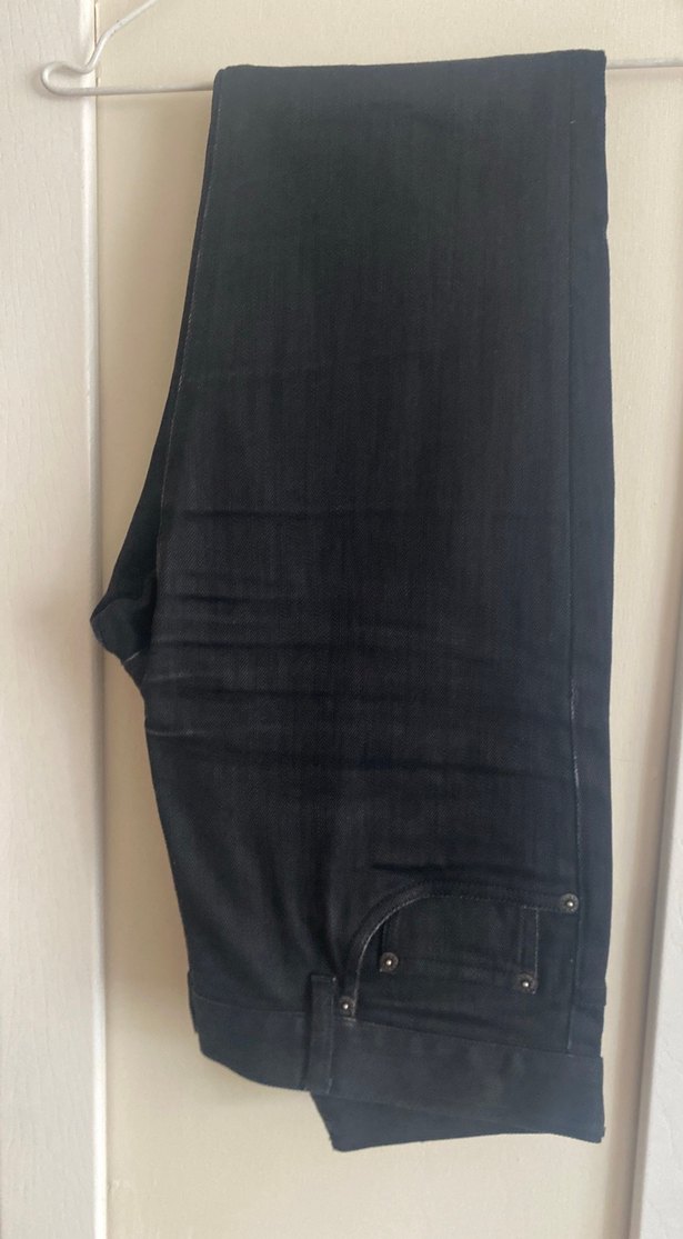 Siyah renkli, kemerli regular fit erkek kot pantolon. Günlük kullanıma uygun, minimalist ve streetwear tarzda.