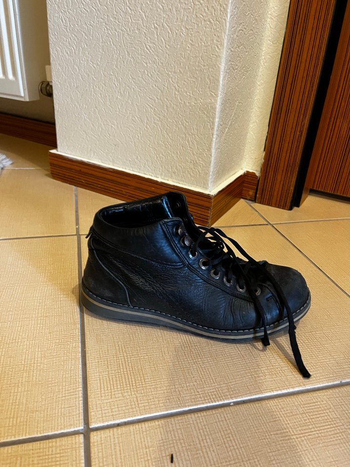 Kemer detaylı siyah erkek sokak tarzı bot, desen içermeyen şık tasarıma sahip. Günlük kombinlere tarz katar. Timberland orjinal az kullanılmış