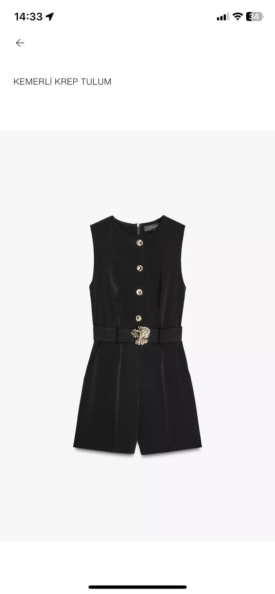 İsteyene detaylı fotoğraf koyarım.Kolsuz, siyah mini elbise, kemerli ve yakasında kesimli yaka bulunur. Parlak sentetik kumaştan, düğmeli ve ofis için uygun klasik modern tarzda, normal kesimdir. ✨