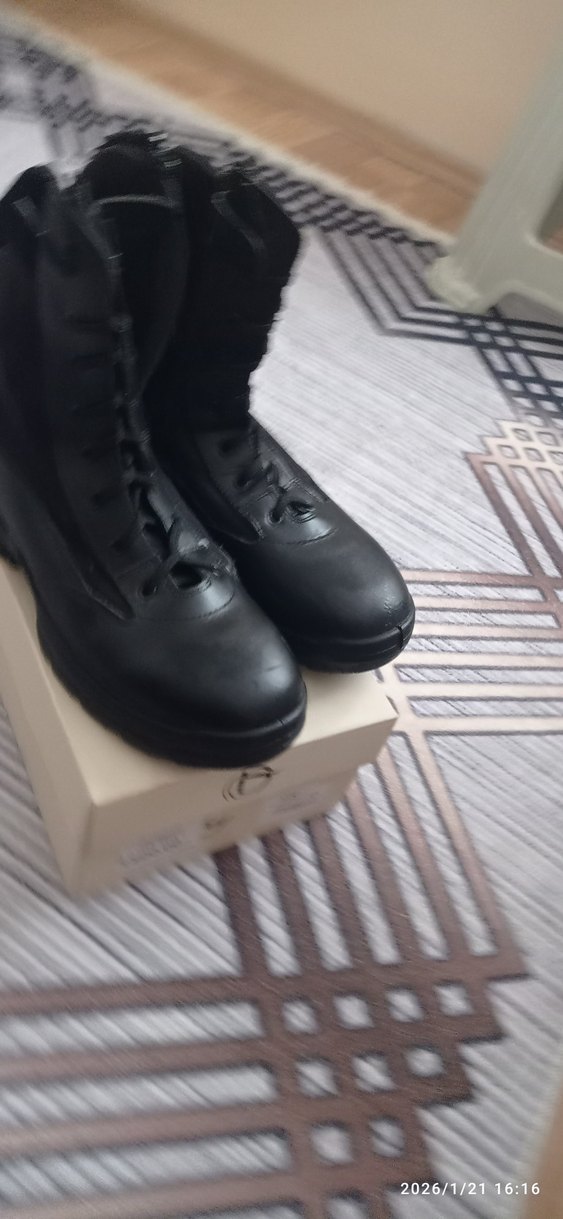 Siyah renkte, kemerli ve lastik malzemeden yapılmış, gotik ve sokak stilini yansıtan erkek botları.