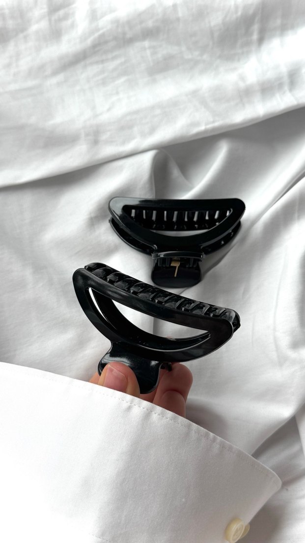 Plastik malzemeden siyah kemerli saç tokası, gotik ve avangard tarzda, modayı takip edenler için uygun.
