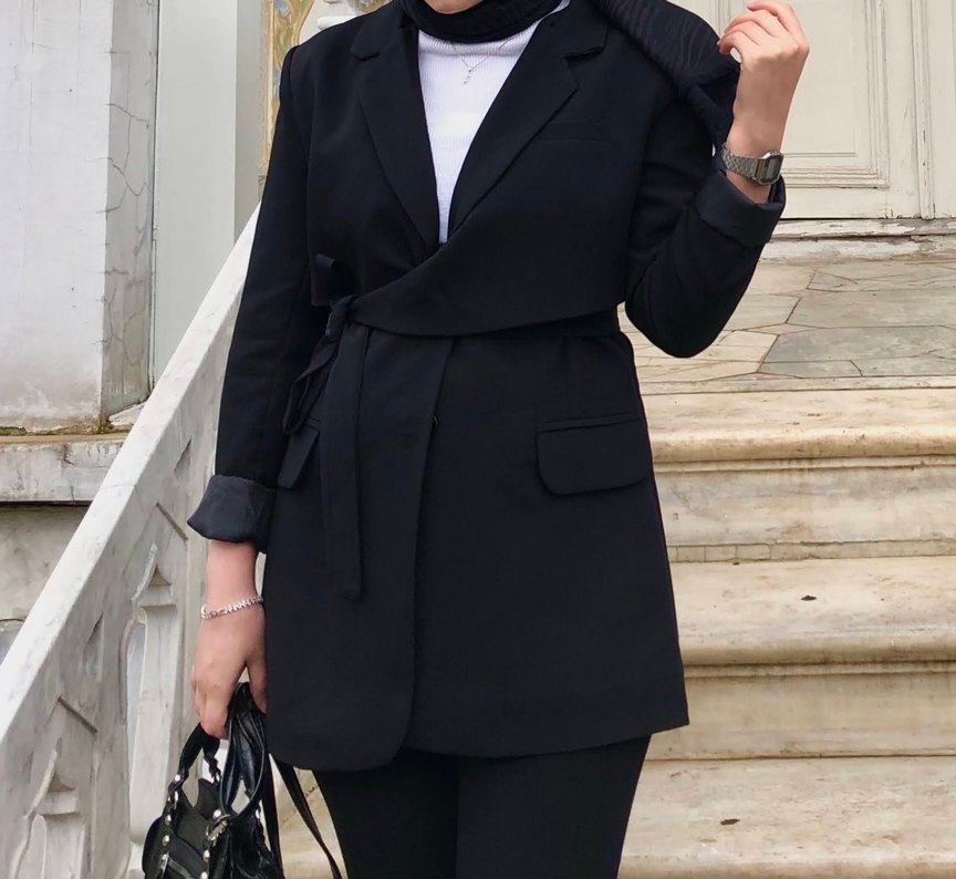 Siyah renkte, kemerli ve kesik yakalı kadın blazer ceket. Normal boyda, regular fit ve suni kumaştan üretilmiştir. Ofis ve günlük kullanıma uygundur.