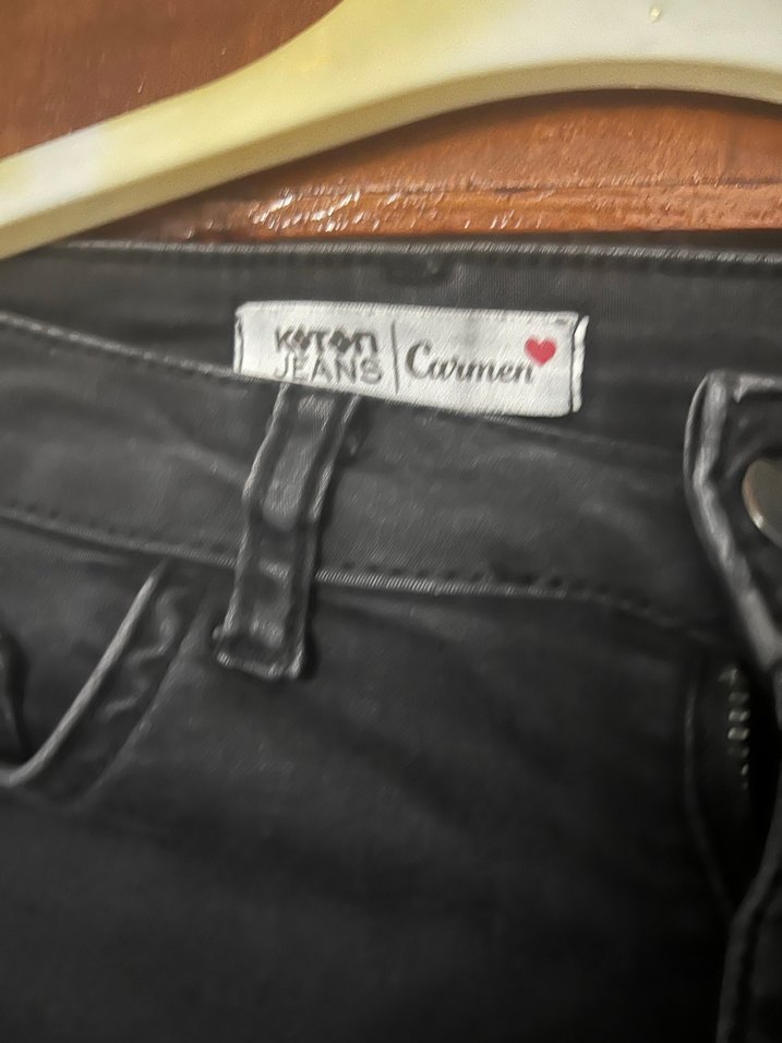 Siyah, kemerli, regular fit kadın boyfriend denim pantolon, günlük rahat kullanım için uygundur.