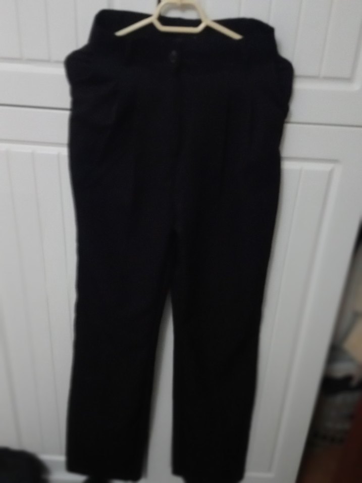 Siyah renkli, kemerli ve midi boy kadın denim pantolon, rahat ve günlük kullanıma uygun.