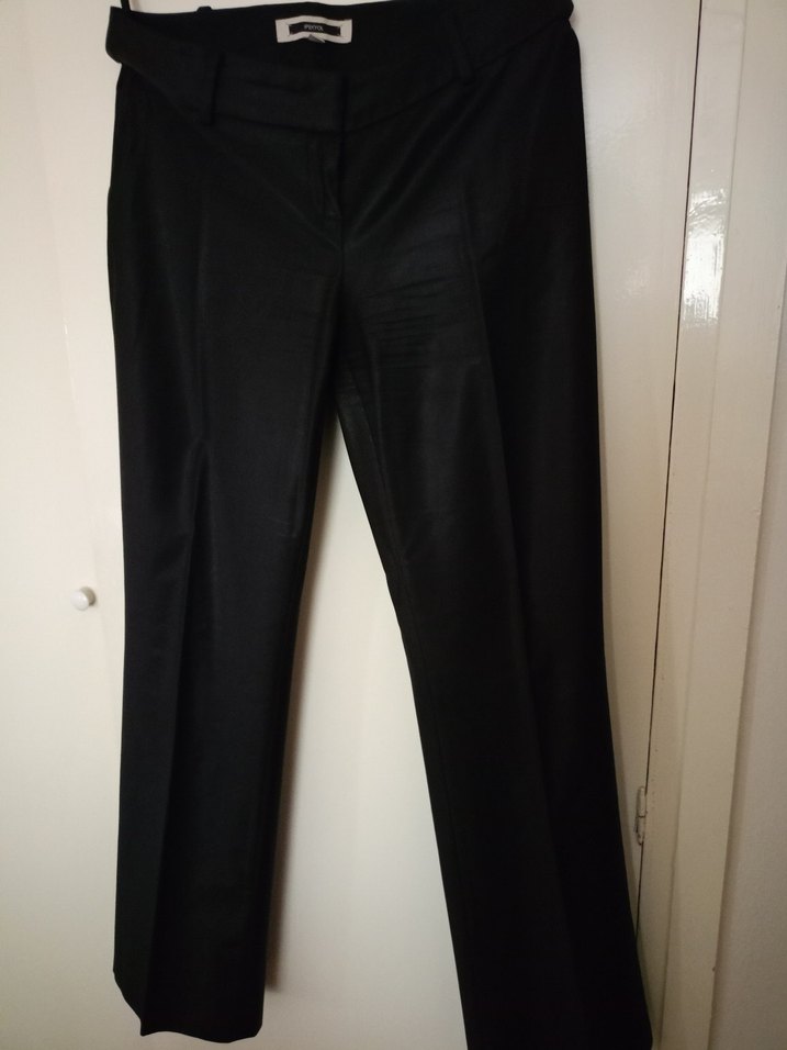 Siyah, saten görünümlü kumaştan, kemerli ve midi boy, klasik goth tarzında kadın pantolon. Ofis kullanımı için uygundur.