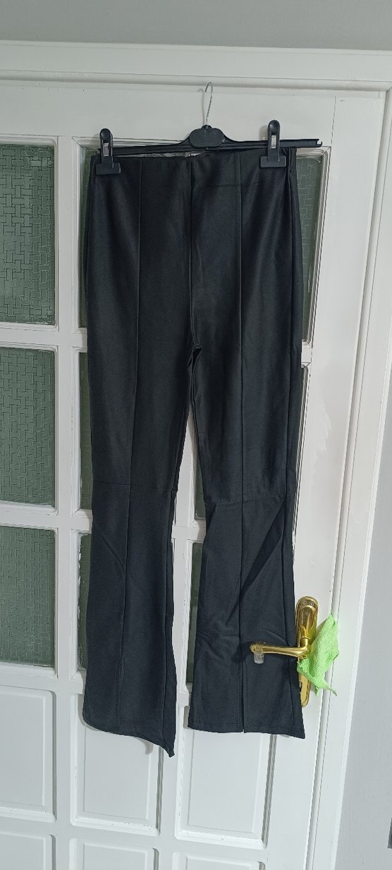 Siyah kumaştan, kemerli ve midi boy kadın pantolon. Sokak stili için uygun, sentetik kumaştan üretilmiştir. deri pantolon alındığından beri hiç giyilmedi 30 beden ispanyol paça bir sorunu yoktur