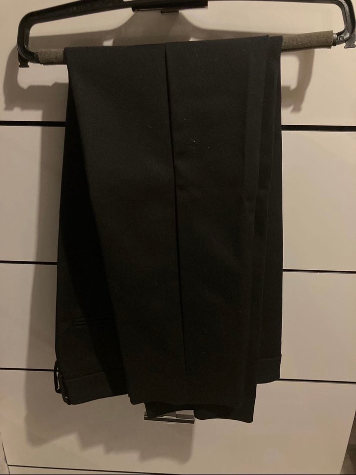 Siyah, kemerli, normal boy midi uzunluğunda kadın kumaş pantolon. Düz ve sentetik kumaştan, ofis stiline uygun.