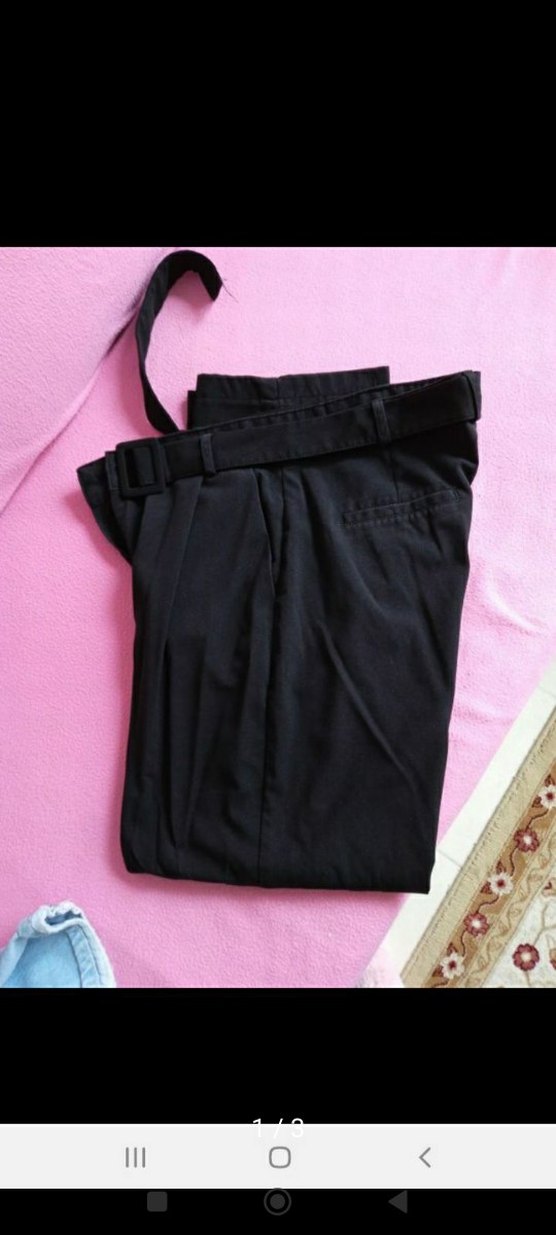 Kadınlar için siyah sentetik kumaştan, normal boy ve regular fit kesime sahip pantolon. Kemerli ve sade streetwear tarzında, günlük kullanıma uygun.