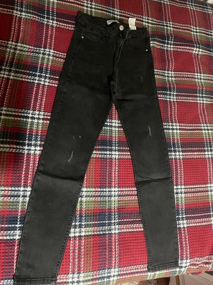 Siyah denimden yapılmış, kemerli detaylı ve midi boyda olan bu kot pantolon, grunge punk tarzına uygun günlük kullanıma uygundur.