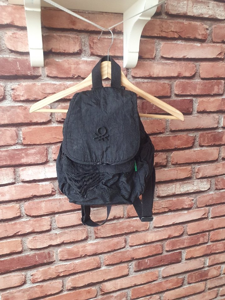 Siyah kemerli, sokak stili ve rock punk havası taşıyan kadın sırt çantası. Desensiz ve günlük kullanıma uygun. çok iyi durumda Benetton marka