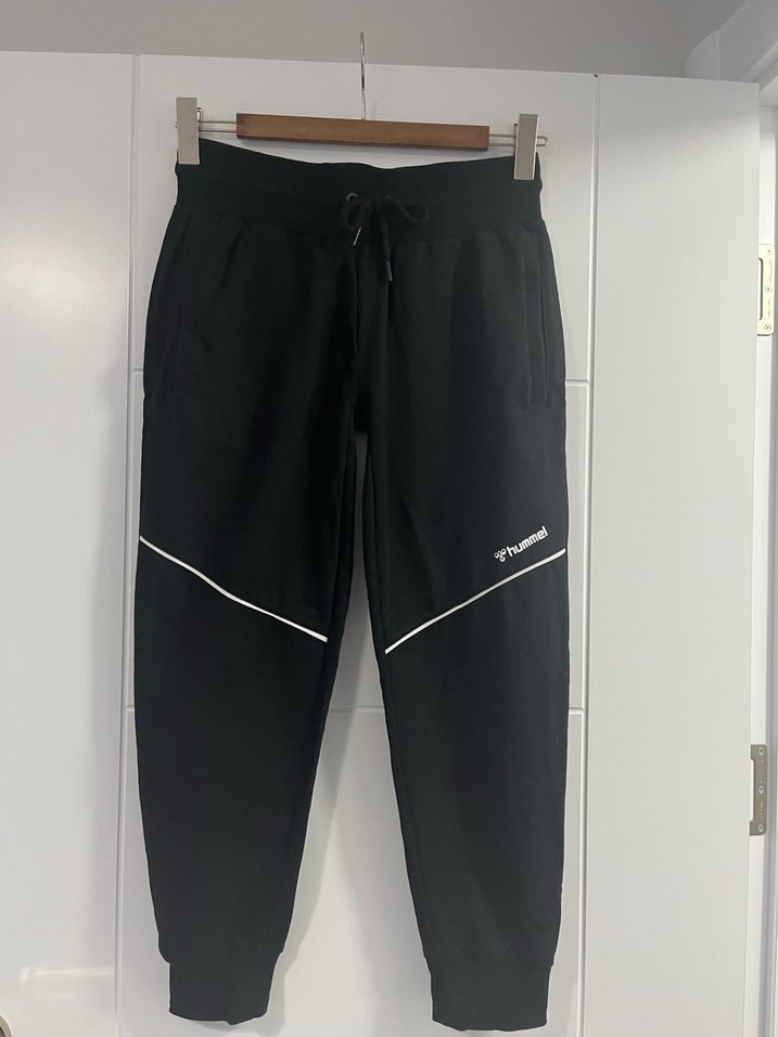 Siyah, kemerli, pamuklu kumaştan kadın spor eşofman altı. Normal boy, bol kesim ve reflektör detaylı, spor ve günlük kullanıma uygun.