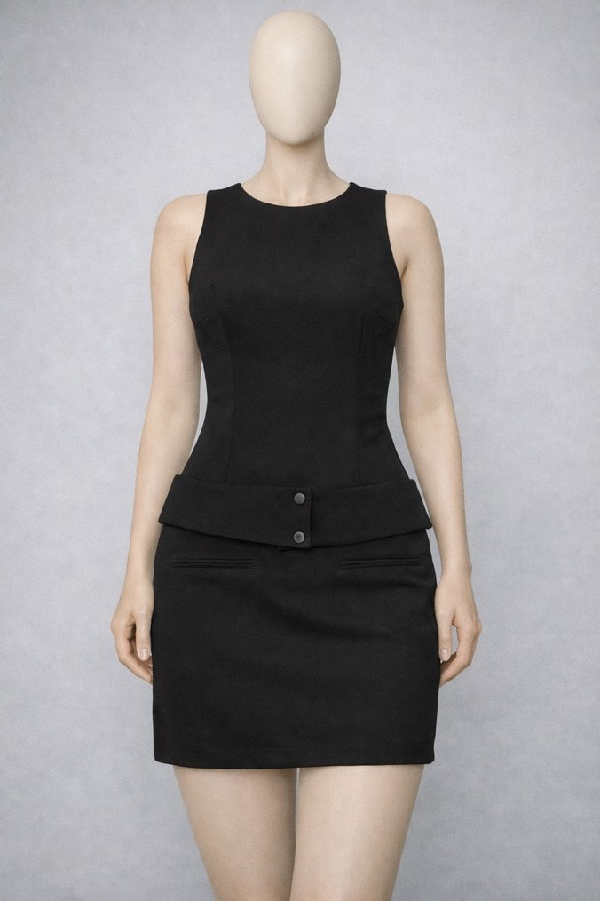 Siyah, kolsuz bu kalem elbise, pürüzsüz sentetik kumaştan yapılmıştır. Belde kemer detayıyla ofis için uygun şık, gotik bir tarz sunar. etiketi üzerinde, hiç giyilmedi. double face kumaştır. 34-36 bedendir.
