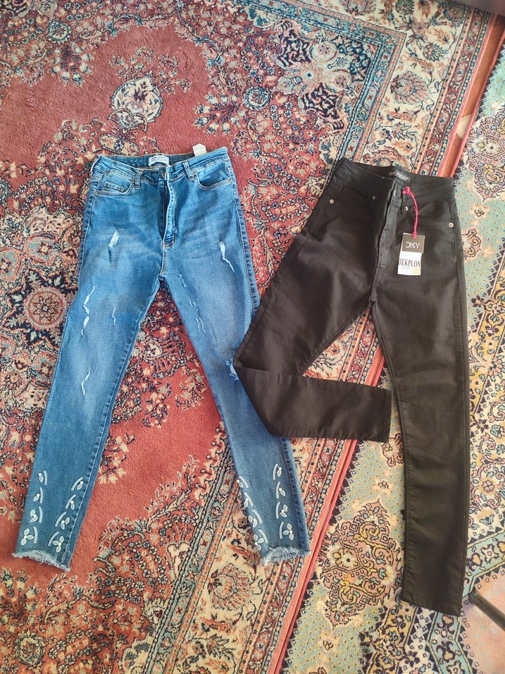 Siyah renkli, kemerli, bol kesim midi uzunlukta kadın kot pantolon. Sokak stili ve hafif batik deseniyle günlük kullanıma uygun.