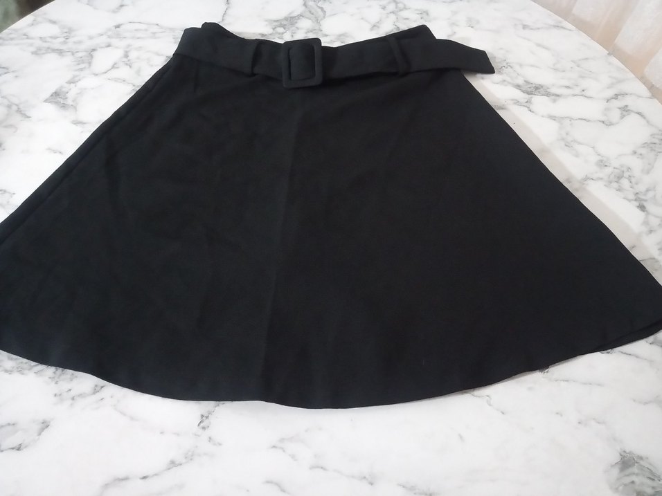 Siyah Kemerli Midi Kadın Etek