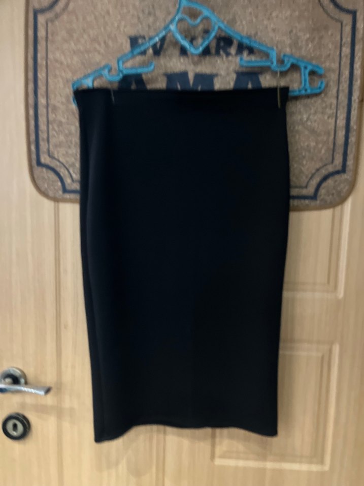 Siyah renk, kemer detaylı, vücuda oturan midi kalem etek. Ofis kullanımı için uygun, sentetik dokulu kumaştan üretilmiştir.